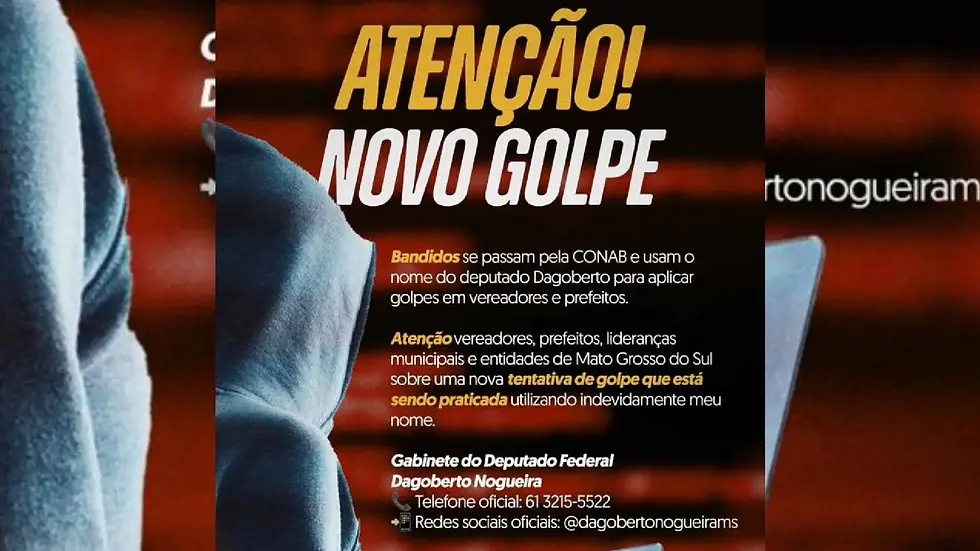 Após ajudar a desmontar o golpe, o deputado Dagoberto Nogueira (PSDB) virou alvo dos criminosos. Se antes ele quase virou vítima dos golpistas, agora o nome do parlamentar de Mato Grosso do Sul é usado para aplicar o mesmo golpe. A situação veio a público nesta quinta-feira (26), quando o deputado publicou alerta nas redes sociais.