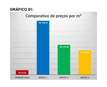 “Considerando os dados elencados, é possível constatar que os valores cobrados na transação de venda de parte do terreno do Asilo de Bela Vista estão consideravelmente abaixo dos valores pedidos pelos terrenos da região, com uma diferença mínima de 275,09% e máxima de 681,43%, sendo esta última constatada em comparação ao imóvel que mais se assemelha à área vendida pela Associação Evangélica de Proteção aos Desamparados de Bela Vista”, aponta a análise.